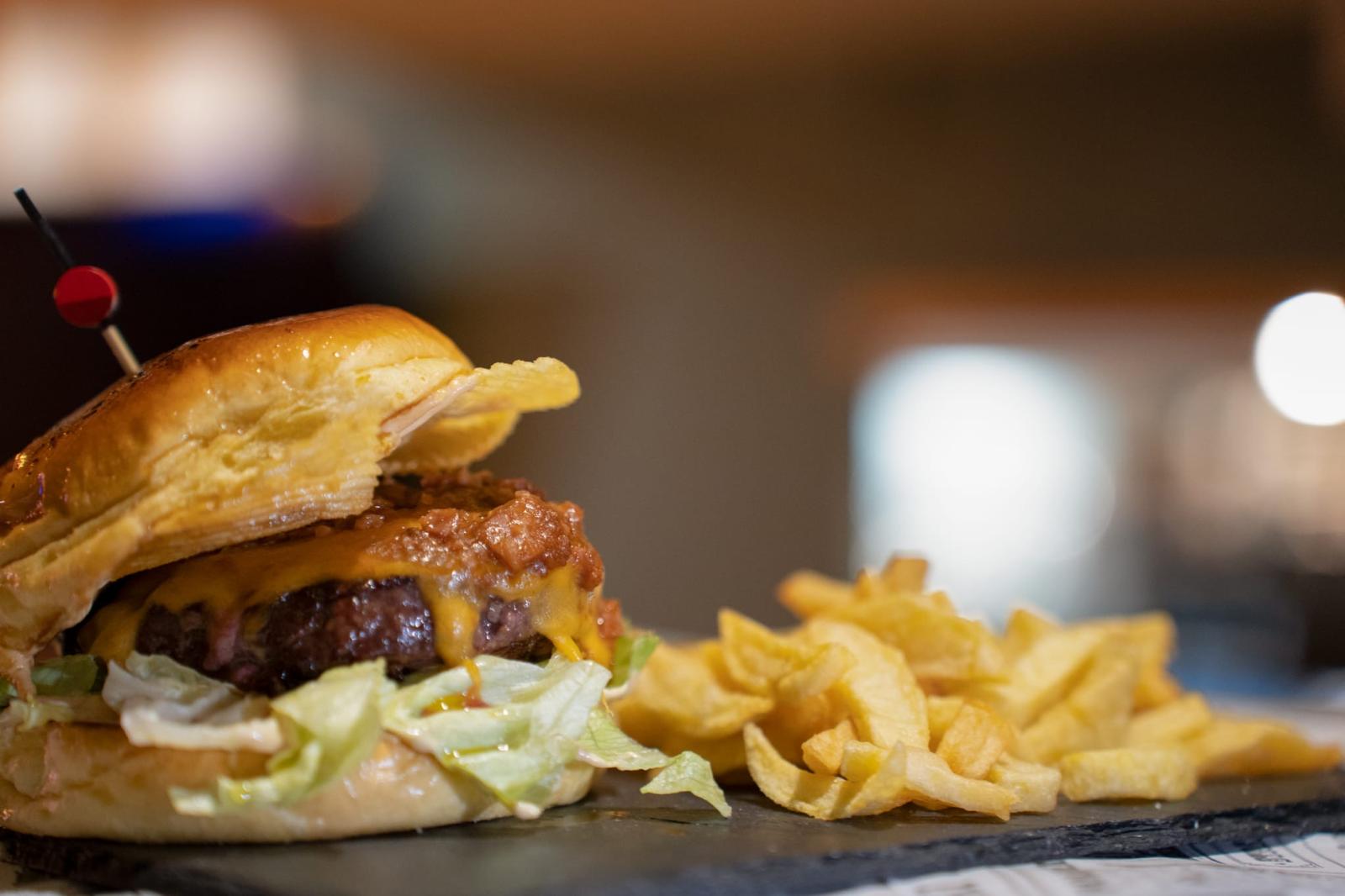Hamburguesas artesanales, cazoletas de raxo y gambón, croquetas cremosas, bocatas y postres caseros.